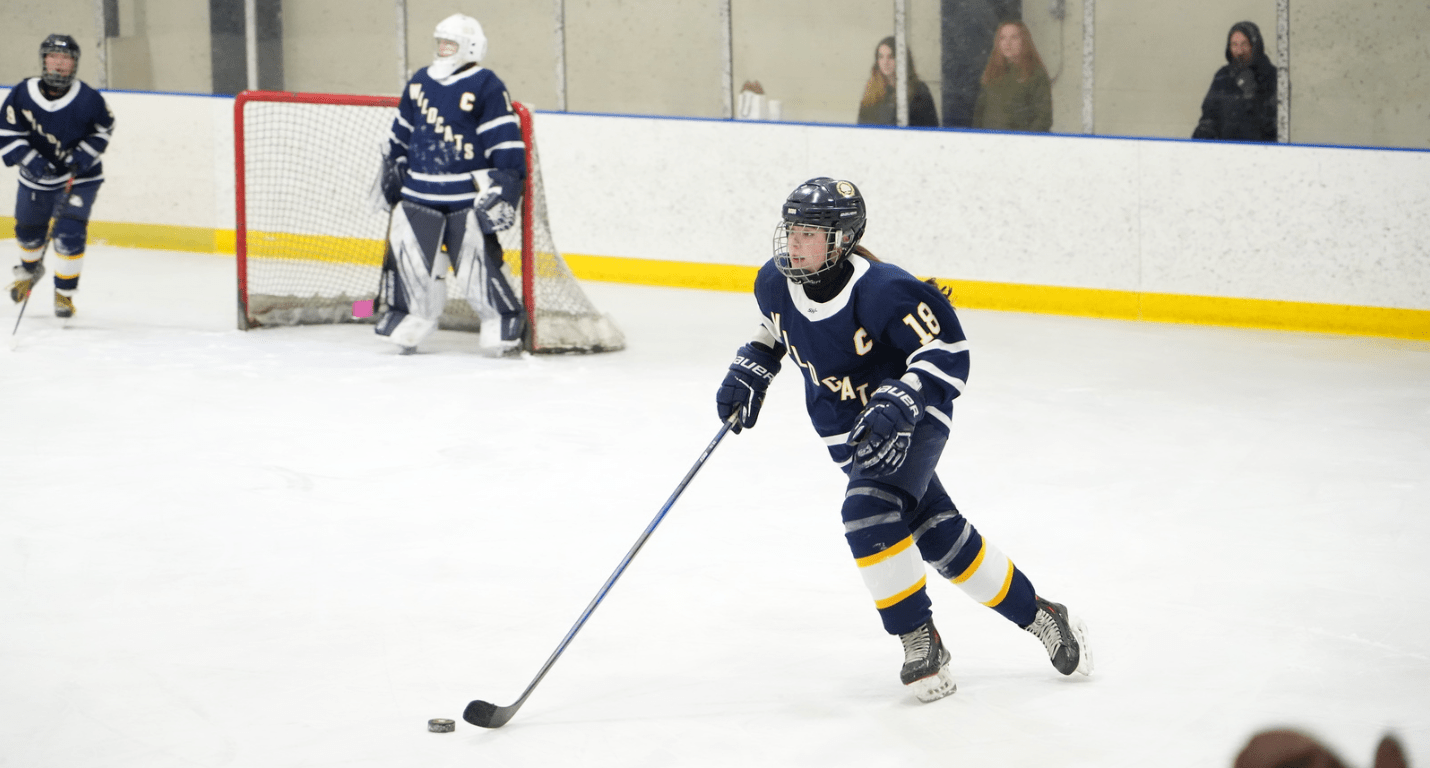 Block (#7) was originally a figure skater but decided to pick up ice hockey during her sophomore year. Since then, she has been a crucial part of the team and has greatly contributed to their success as a winger. Heintz (#18) has been playing ice hockey for her whole life and is currently a defenseman who plays for both the varsity team at RCDS and an outside club team. Without her incredible leadership for two years as a captain, the team would not be where they are today.